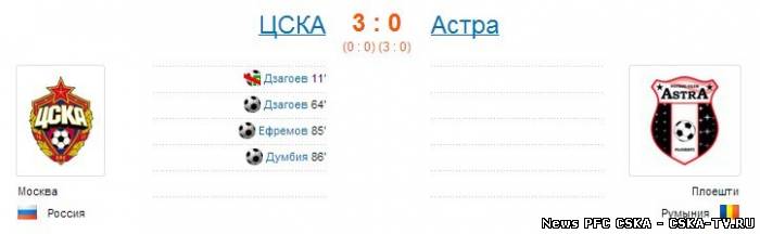ЦСКА (Россия) - "Астра" (Румыния) - 3:0 (0:0)