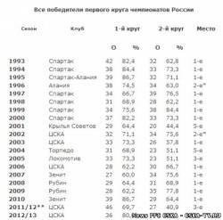 В 5-й раз за 20 российских чемпионатов (без учета самого первого 1992 года, когда отсутствовала туровая система) лучшим клубом по итогам первой половины оказался ЦСКА.